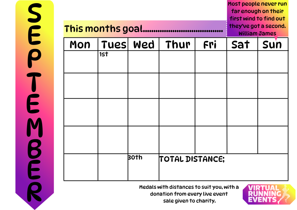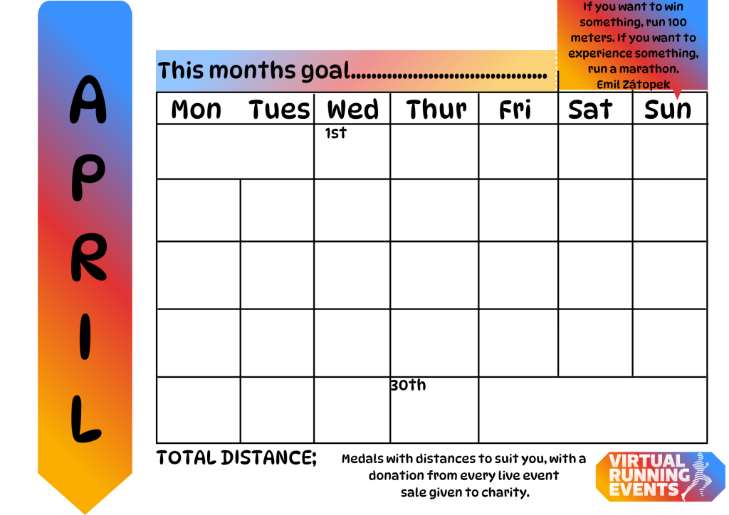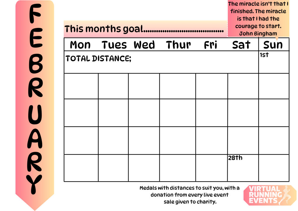 Download our FREE mileage trackers – perfect for keeping track of your runs so you can claim your medals! Don’t forget, when you have completed your challenge, head over to our “Submit Your Evidence” page and fill in the form. Looking for a new challenge? Have a look at our available events HERE