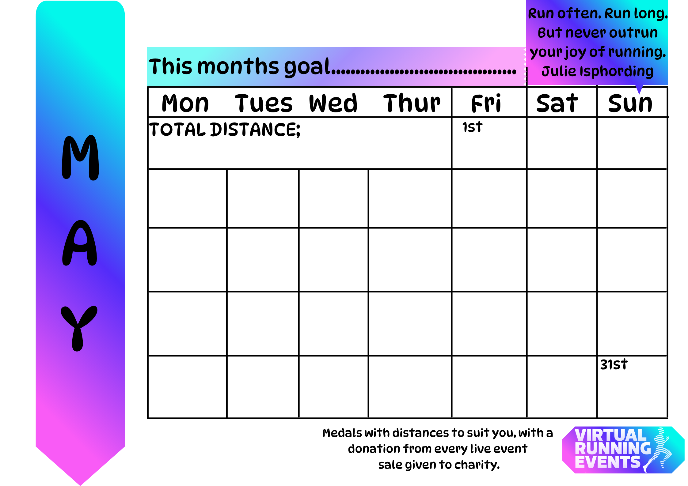 Download our FREE mileage trackers – perfect for keeping track of your runs so you can claim your medals! Don’t forget, when you have completed your challenge, head over to our “Submit Your Evidence” page and fill in the form. Looking for a new challenge? Have a look at our available events HERE